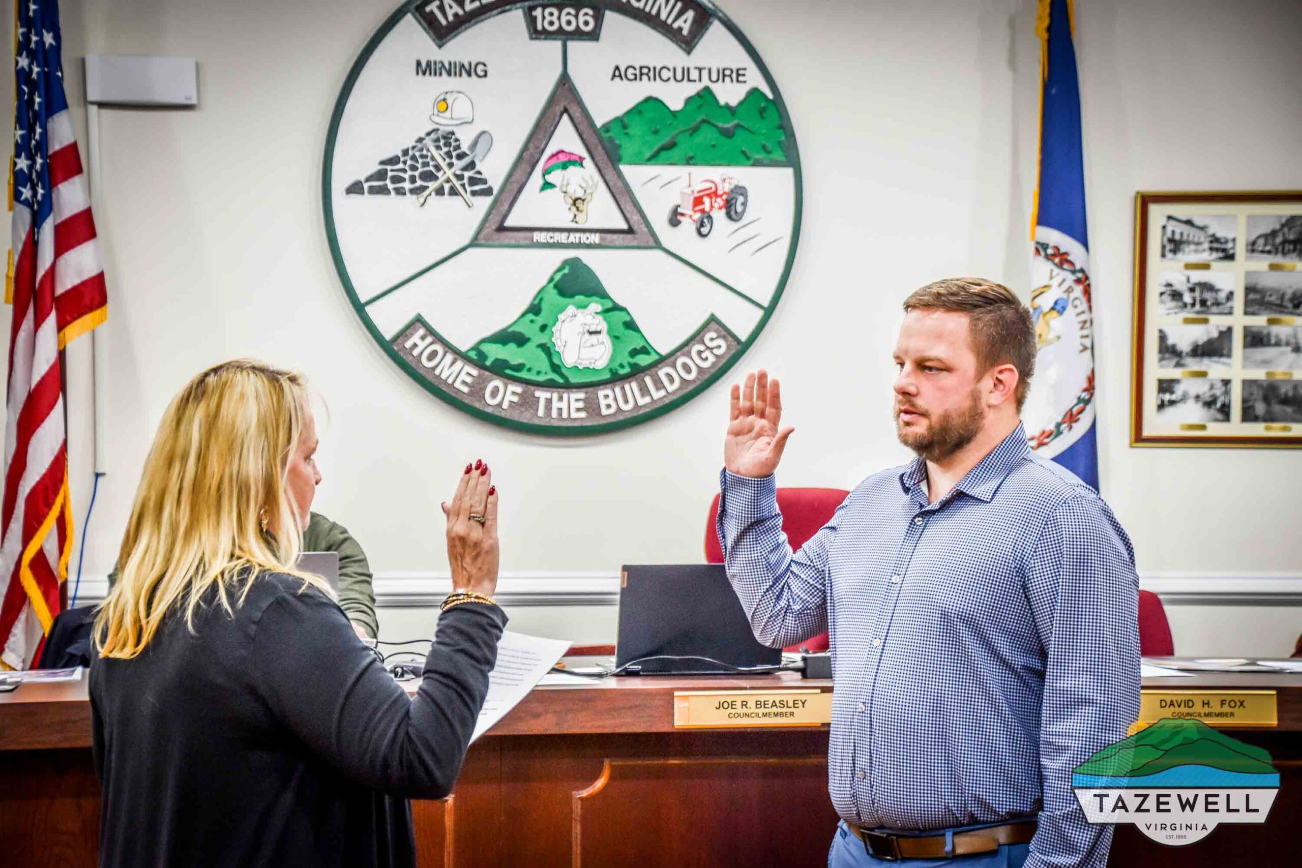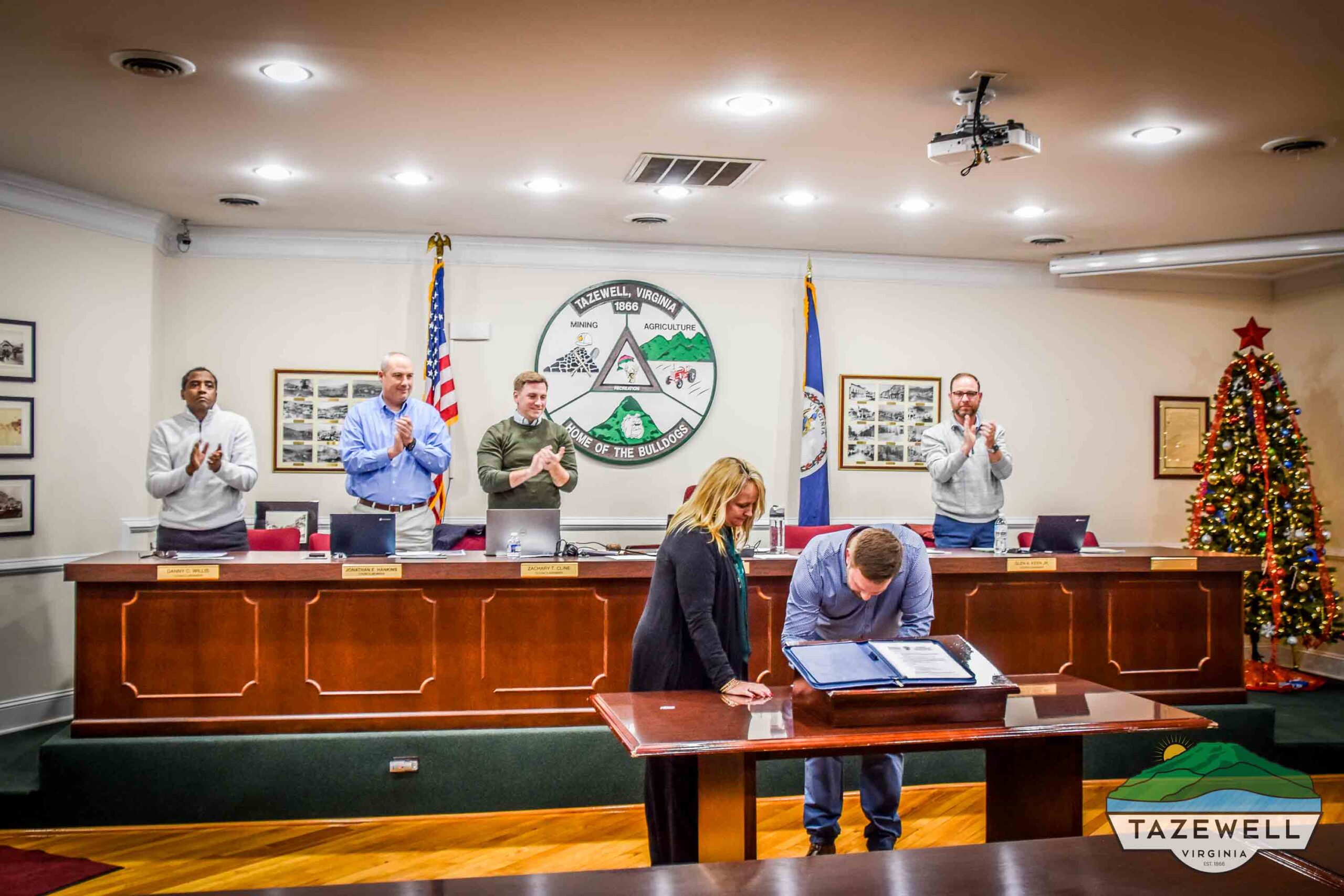 Charity Hurst, the Tazewell County Clerk of Court, swore in newly appointed Mayor Joe Beasley. Mayor Beasley was selected by Town Council at their December 1st meeting and will transition from his current Councilmember position. Congratulations Mayor Beasley!