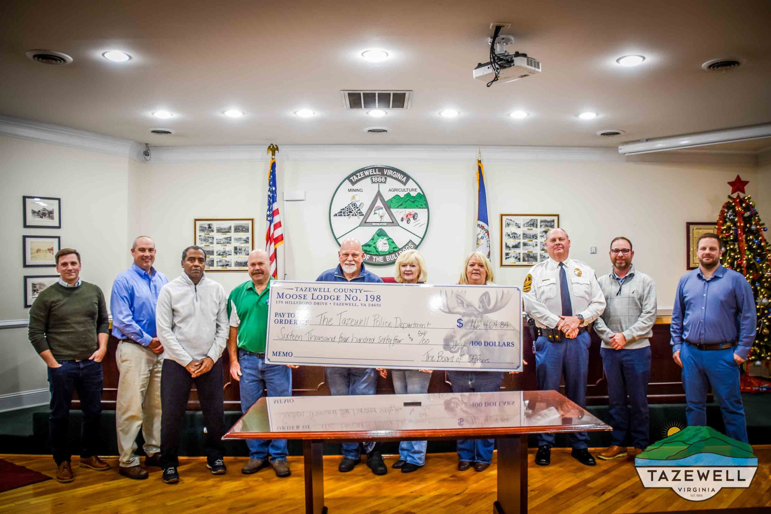 Chief of Police Lampert, along with Town Council, recognized and gave their appreciation to the Tazewell County Moose Lodge #198. Members of the lodge recently donated $16,464.84 to the Town of Tazewell Police Department for the purchase of new firearms, holsters, magazines, and ammunition. We applaud their support for our town and its safety and thank Tazewell County Moose Lodge #198 for being a wonderful community partner.